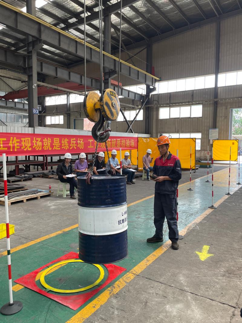 單梁行車組競賽項目,更突出了遵守安全操作規(guī)程的重要性。競賽內(nèi)容涵蓋了一些日常工作中非常重要,又很容易忽視的有關(guān)行車操作的安全問題。行車實操比賽要求每個選手按規(guī)定完成每個動作,比如:檢查限位,試吊,穿越障礙物,跨越障礙物,吊鉤及遙控器歸位等。這不僅是一次技能操作大比拼,也是一次全員安全教育。