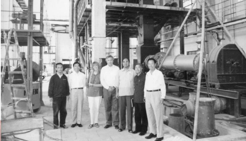 1989年,合肥院首臺自主開發(fā)的HRM1250原料立式磨成功投運,各項技術(shù)指標(biāo)達(dá)到或超過設(shè)計要求,填補國內(nèi)空白。該成果于1993年通過建材行業(yè)部級鑒定,達(dá)到國際先進(jìn)水平,隨后榮獲“國家級新產(chǎn)品”、“國家優(yōu)秀節(jié)能科技成果”和國家建筑材料工業(yè)局建材行業(yè)部級科技進(jìn)步二等獎等一系列榮譽獎勵。圖為技術(shù)人員與院領(lǐng)導(dǎo)在該臺立式磨前合影