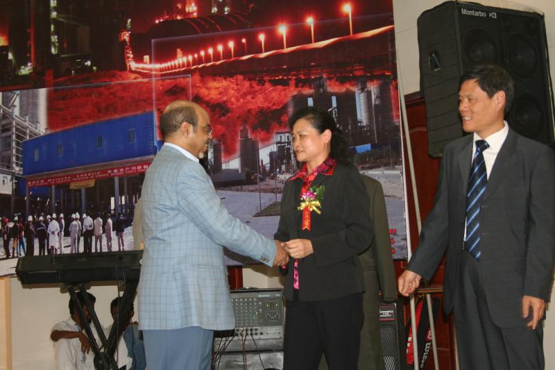 2011年6月25日,在合肥院總承包的埃塞俄比亞Messebo水泥廠竣工典禮上,埃塞總理梅勒斯與建材總院總經(jīng)理姚燕親切握手。合肥院在非洲市場承接多個(gè)水泥生產(chǎn)線項(xiàng)目,廣受客戶好評。