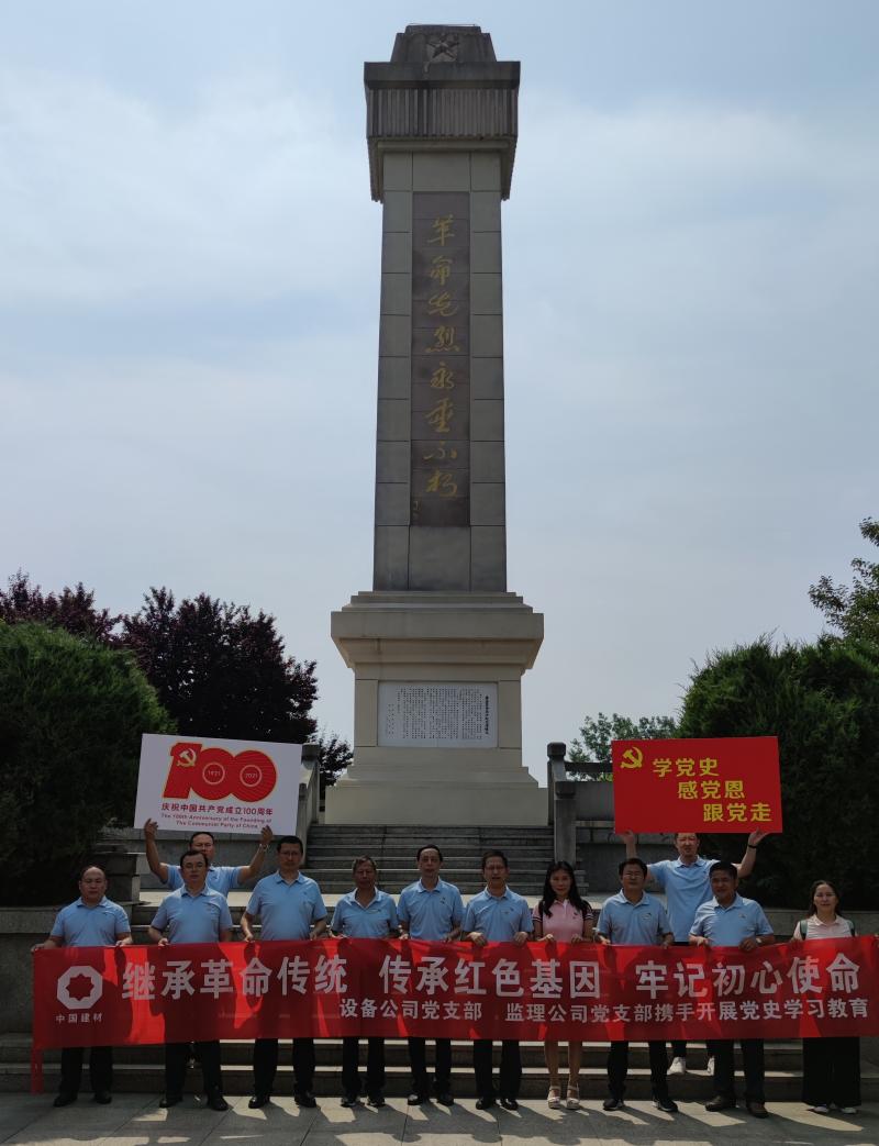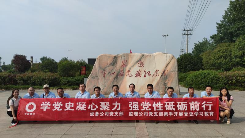 為了慶祝中國共產(chǎn)黨成立100周年,落實黨史學(xué)習(xí)教育工作計劃, 6月11日,我院設(shè)備公司和監(jiān)理公司黨支部在中共安徽第一面黨旗紀念園和中國建材(合肥)技術(shù)中心工程項目現(xiàn)場開展主題為“學(xué)黨史、感黨恩、跟黨走”黨史學(xué)習(xí)教育實踐活動,支部黨員、入黨積極分子和部分中層以上干部參加了此次活動。