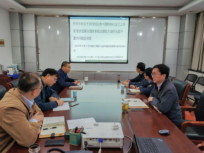11月19日上午,工程設(shè)計公司召開黨總支支委會暨公司領(lǐng)導(dǎo)班子會深入學(xué)習(xí)黨的十九屆四中全會精神,總支副書記孫峻主持會議,帶領(lǐng)大家學(xué)習(xí),重點(diǎn)對《中共中央關(guān)于堅(jiān)持和完善中國特色社會主義制度、推進(jìn)國家治理體系和治理能力現(xiàn)代化若干重大問題的決定》(以下簡稱“決定”)作了深刻而細(xì)致的解讀。