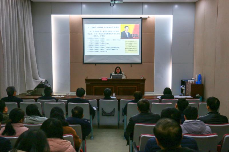 魏群教授圍繞黨的十九屆四中全會召開的時代背景、全會《決定》的體系內(nèi)容、全會精神的貫徹落實三個方面,深入闡釋了黨的十九屆四中全會的重大意義,闡述了中國特色社會主義制度和國家治理體系的顯著優(yōu)勢,對全會《決定》提出的總體要求、總體目標(biāo)和重點任務(wù)進行了系統(tǒng)解讀,對如何貫徹落實黨的十九屆四中全會精神進行了具體指導(dǎo)。宣講報告聚焦重點和關(guān)鍵,內(nèi)涵豐富、系統(tǒng)全面,深入淺出、鮮活生動、論述精辟,參加宣講報告會的黨員同志深受啟迪,倍受教育。